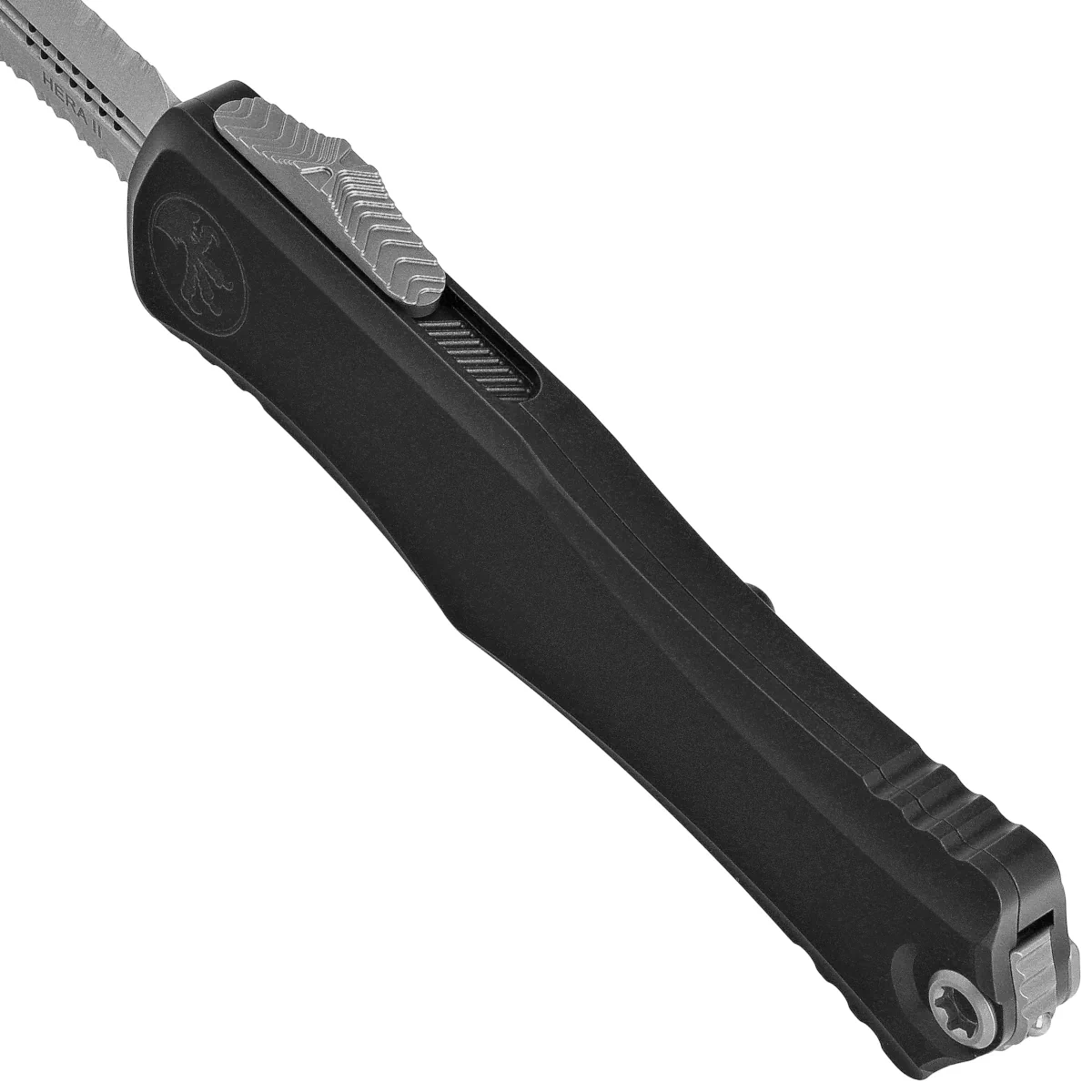 • Hera 2 D/E P/S Black Aluminium, Stonewashed jeden z najlepszych noży automatycznych OTF, inpirowany modelem Troodon. Wygodny w przenoszeniu, a jednocześnie zachowuje moc i osiągi większych konstrukcji. Projekt A. Marfione knifemakera właściciela Microtech