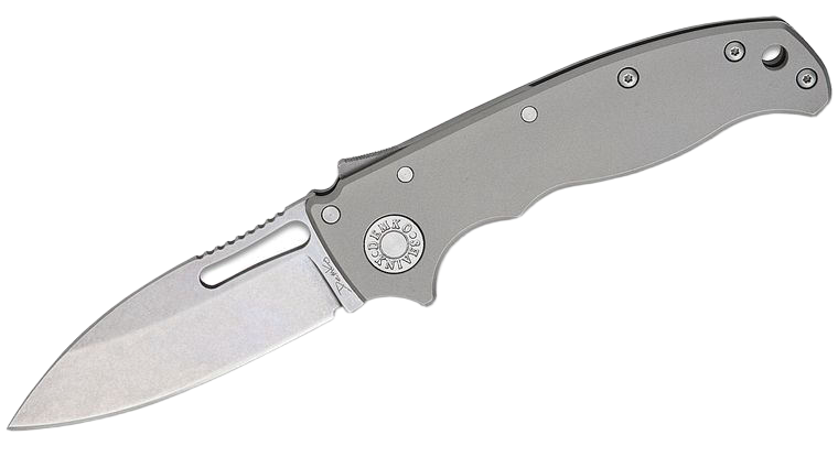• AD20.5 Slicer Shark Smooth Titanium, Stonewashed, kompaktowy nóż składany klasy premium z frezowaną rękojeścią z tytanu, głownią ze stali CPM 3V i opatentowaną blokadą Shark-Lock™. Projekt Andrew Demko dla najbardziej wymagających użytkowników.