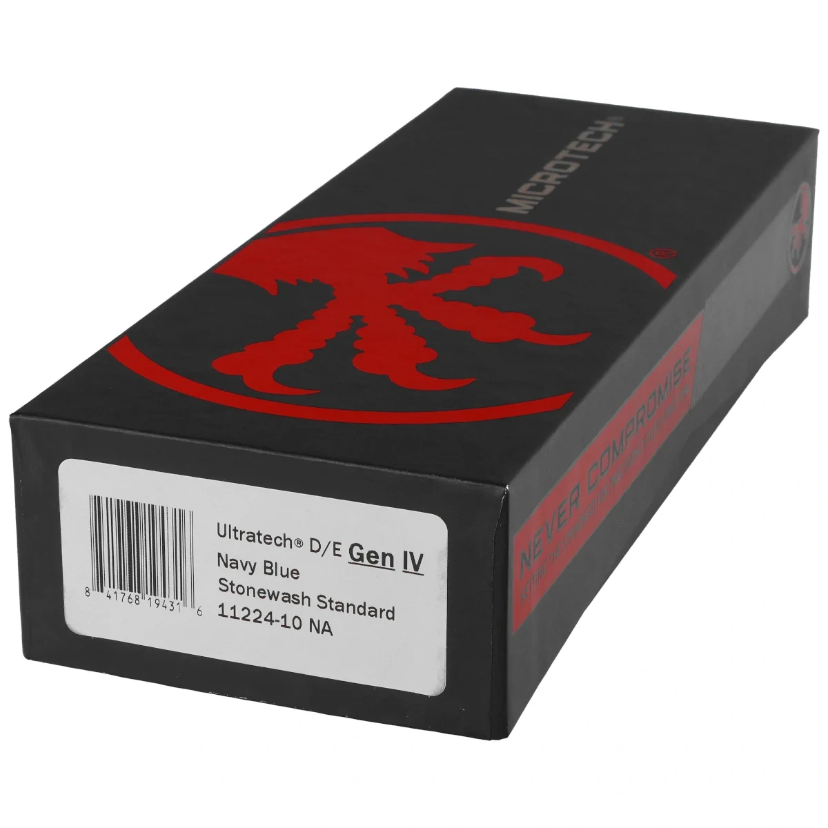 Ultratech Gen IV D/E Navy Blue Aluminium, Stonewashed to pełnowymiarowy nóż automatyczny OTF (Out The Front) z serii Ultratech. Czwarta generacja wyróżnia się szeregiem usprawnień, takich jak; Crud Kutter™, Dual-Fuel Drive Train™. Przeprojektowano również rękojeść, wyposażając ją w rozwiązania znane z innych modeli. Pracujący w trybie D/A (Double Action), umożliwia błyskawiczne wysunięcie i schowanie ostrza za pomocą jednego ruchu kciuka. Projekt autorstwa Tony’ego Marfione, właściciela Microtech Knives, łączy w sobie nowoczesny design z najwyższą jakością wykonania.