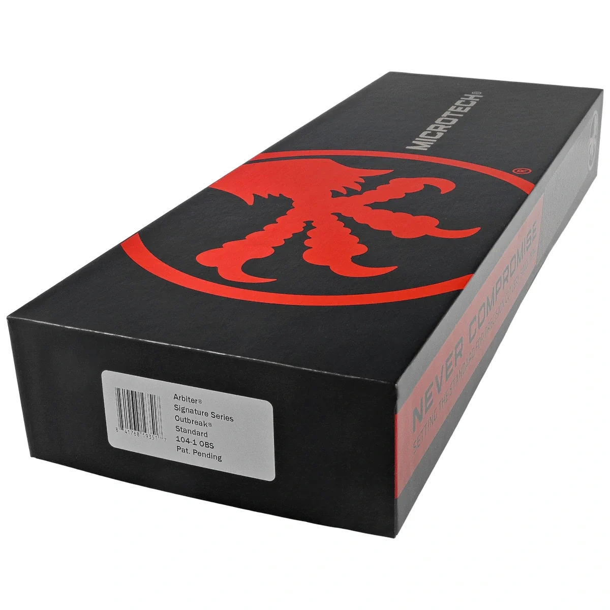 - Arbiter S/E Outbreak G10, Outbreak, największy w ofercie firmy Microtech nóż ze stałą głownią. Potężna klinga typu Bowie z uznawanej za jedną z najlepszych stali na noże Böhler M390MK. Komfortowa, profilowana ergonomicznie rękojeść z kompozytu G10.