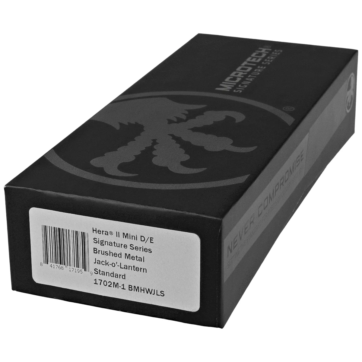 Hera II Mini D/E Jack-O-Lantern Aluminium, Black Apocalyptic jeden z najbardziej wszechstronnych noży automatycznych OTF (Out The Front). Wzorowany na kultowym modelu Troodon, stanowi ogniwo pośrednie pomiędzy modelami EDC a konstrukcjami stricte taktycznymi. Automat o ponadprzeciętnej wytrzymałości z mechanizmem działającym w trybie D/A (Double Action) zapewniając szybkie, mocne i pewne wysuwanie oraz chowanie ostrza. Model wyróżnia się doskonałym spasowaniem elementów i najwyższą jakością wykończenia. Projekt autorstwa Anthony'ego Marfione, uznanego knifemakera i właściciela Microtech Knives.