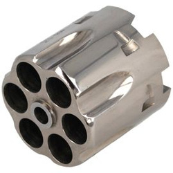 A344 / PP (service) steel 6-chamber percussion drum by Pietta for the black powder revolver 1851 Colt Navy Yank PepperBox, cal .36. Full, un-engraved steel, black oxide finish.