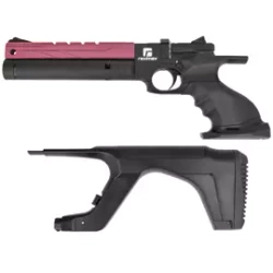 Reximex RP Red, a sporting PCP pistol with a regulator for repeatable shots. Adjustable pin barrel and trigger tongue. Pressure vessel with a capacity of. 50cc. Anatomical handle with shelf with flask attachment option. Cal. 4.5mm, 5.5mm