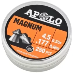 Magnum heavy pellets in .177 / 4.5 mm caliber from Apolo. It is characterized by strong flattening due to its weight and accuracy, great focus. It combines the aerodynamics of Domed pellets with the penetration ability of Point pellets. Pack of 100 psc.