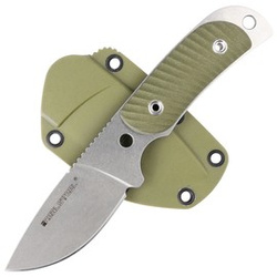 Alieneck Utility, Stonewash, nóż EDC ze stałą głownią typu neck. Projekt polskiego twórcy i projektanta noży Ostapa Hela. Monolityczna konstrukcja z jednego kawałka stali nierdzewnej 12C27, kydexowa pochwa umożliwiająca mocowanie w pionie i poziomie. Hit!