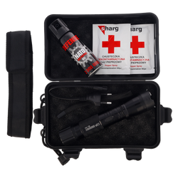 Zestaw obronny 4w1 z paralizatorem 8 mln V, gazem pieprzowym NATO, chusteczkami dekontaminacyjnymi i odpornym pudełkiem survivalowym – pełna ochrona i gotowość do działania w każdej sytuacji.